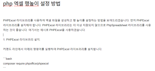 PhpSpreadsheet를 사용하는 것이 권장되므로 아래 코드로 PhpSpreadsheet를 사용하여 행 높이를 설정하는 방법을 확인하세요.