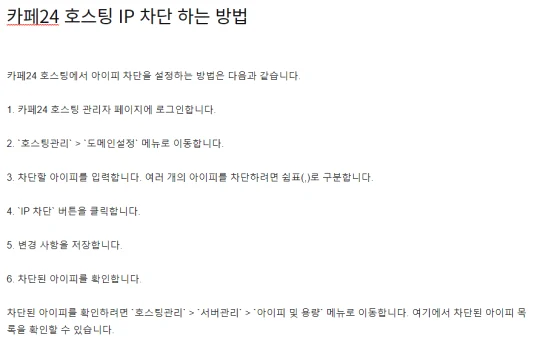 카페24 호스팅에서 아이피 차단을 설정하는 방법은 다음과 같습니다.