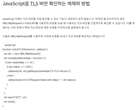 다음은 XMLHttpRequest를 사용하여 서버에 요청을 보내고 TLS 버전을 확인하는 예제입니다.